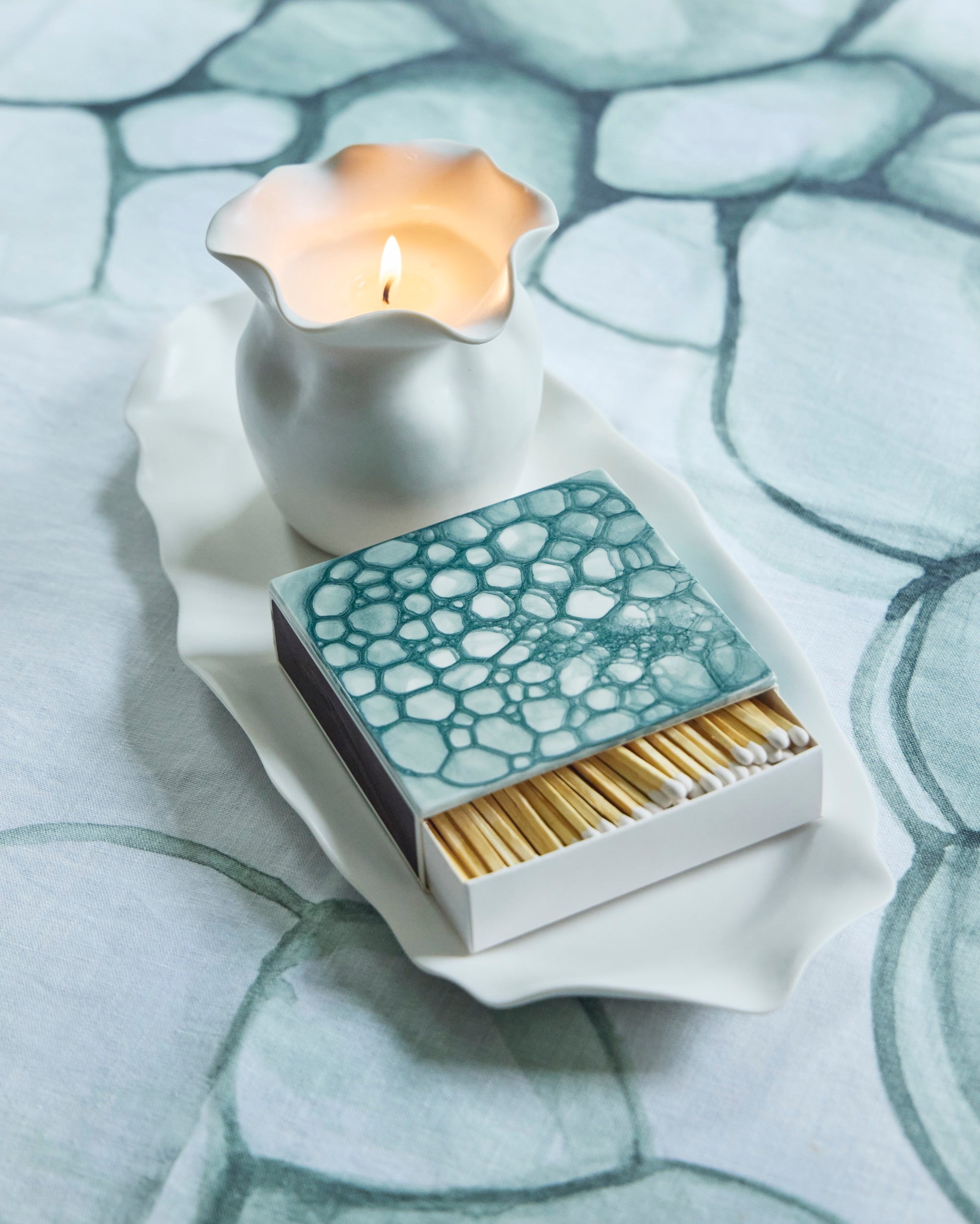 VERDEN CANDLE, TILED MATCHBOX AND PLATTER SET, VELLUM