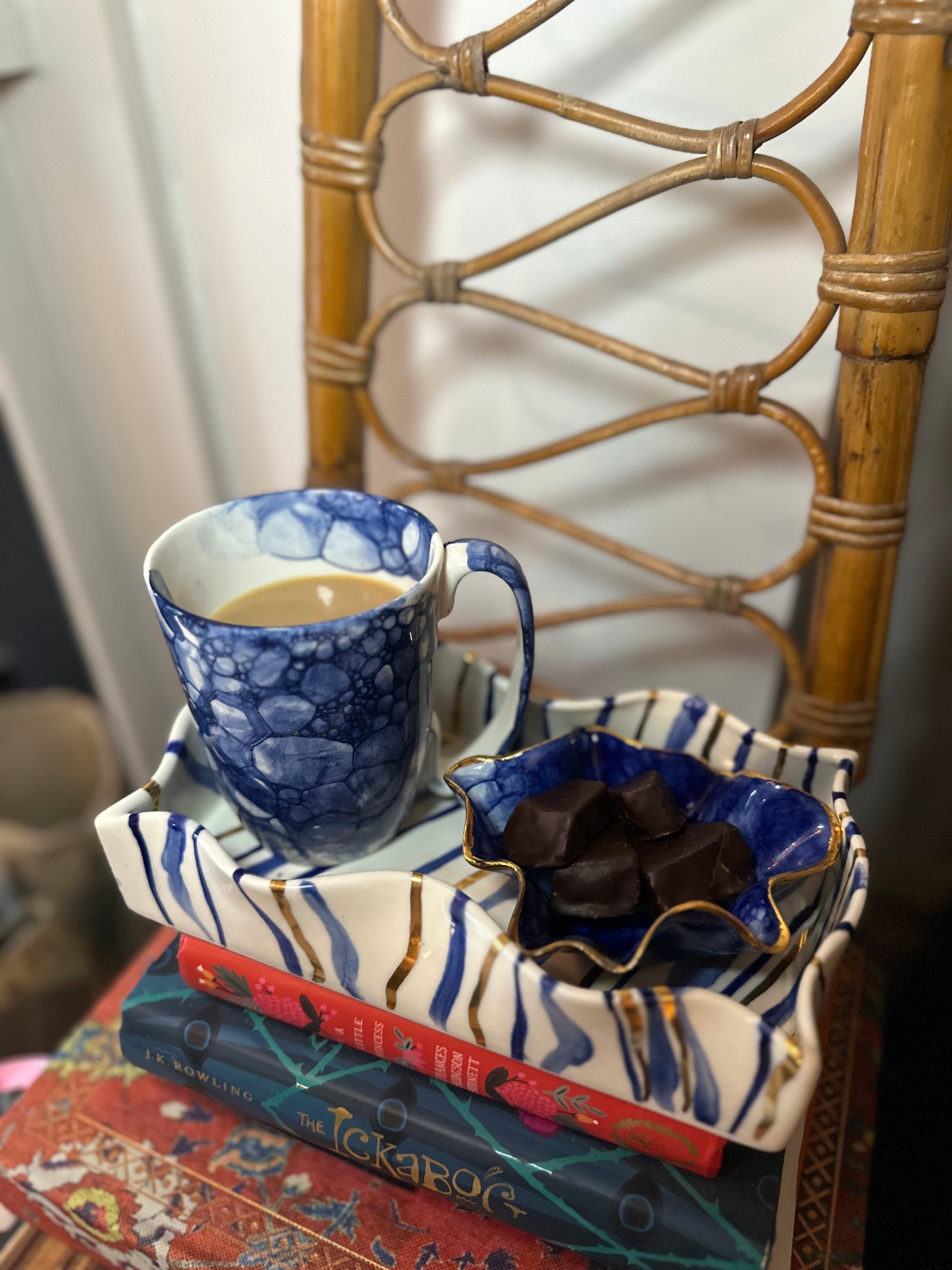 This beautiful mug is the perfect companion for those cosy moments when all you need is a comforting cup of tea. Its generous shape makes it ideal for cradling warm drinks on slow mornings, rainy afternoons or relaxed evenings at home. Beyond its everyday use, the mug also brings a gentle touch of colour and character to your kitchen and coffee table, and even your dishwasher. The blue tones inspired by calming hues of open skies and deep Ibithencan waters, create a sense of warmth and tranquility. Each mug is carefully slipcast from porcelain, ensuring refined craftsmanship and a smooth, elegant form. Produced in small batches, every piece is individually finished with our distinctive bubble glaze, making every mug unique. For ultimate comfort during your tea break, see our Blue Stripe and Bubble Flow Trays.