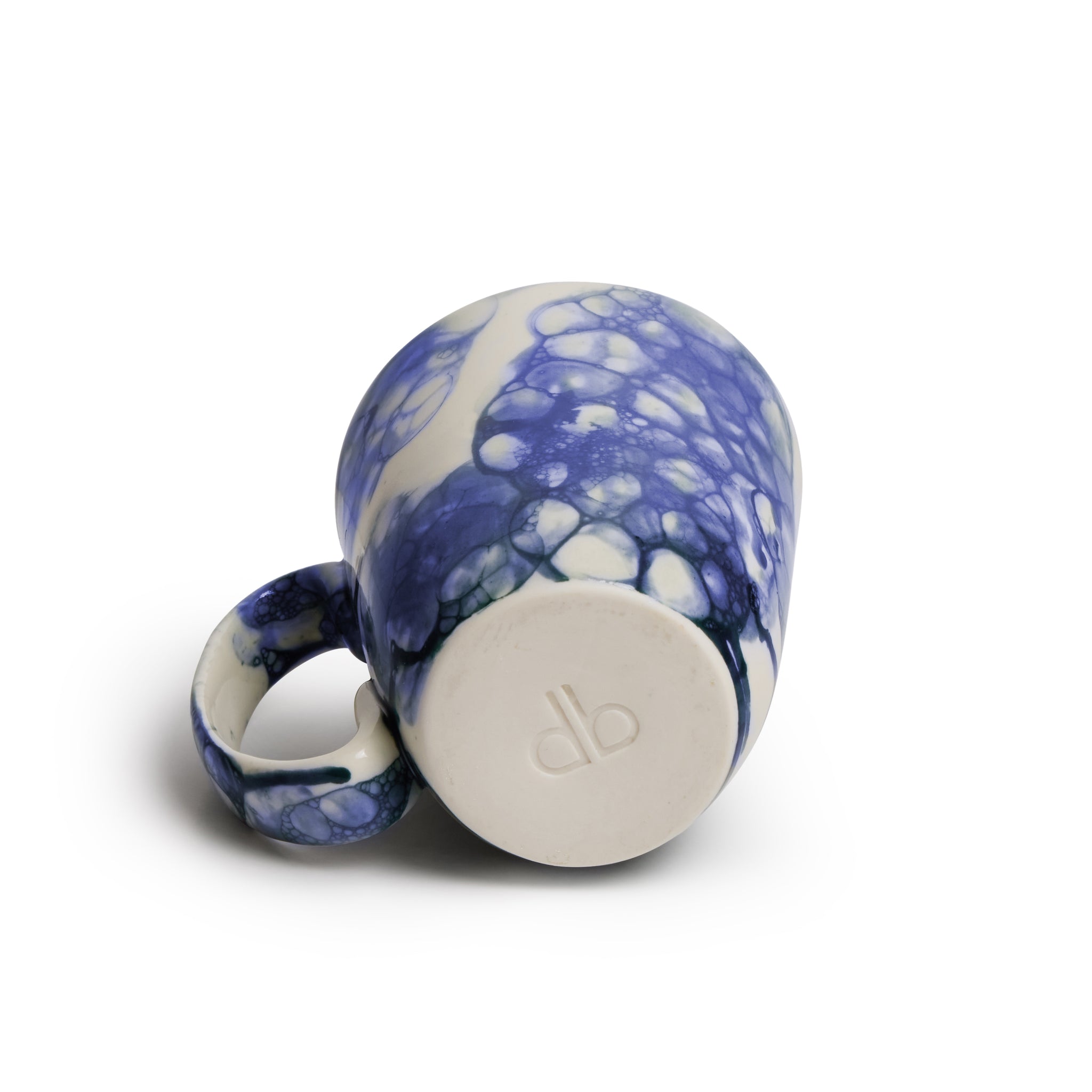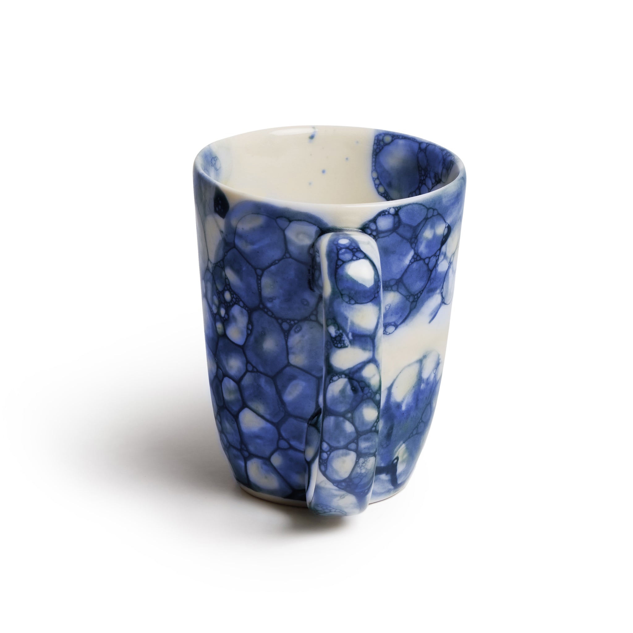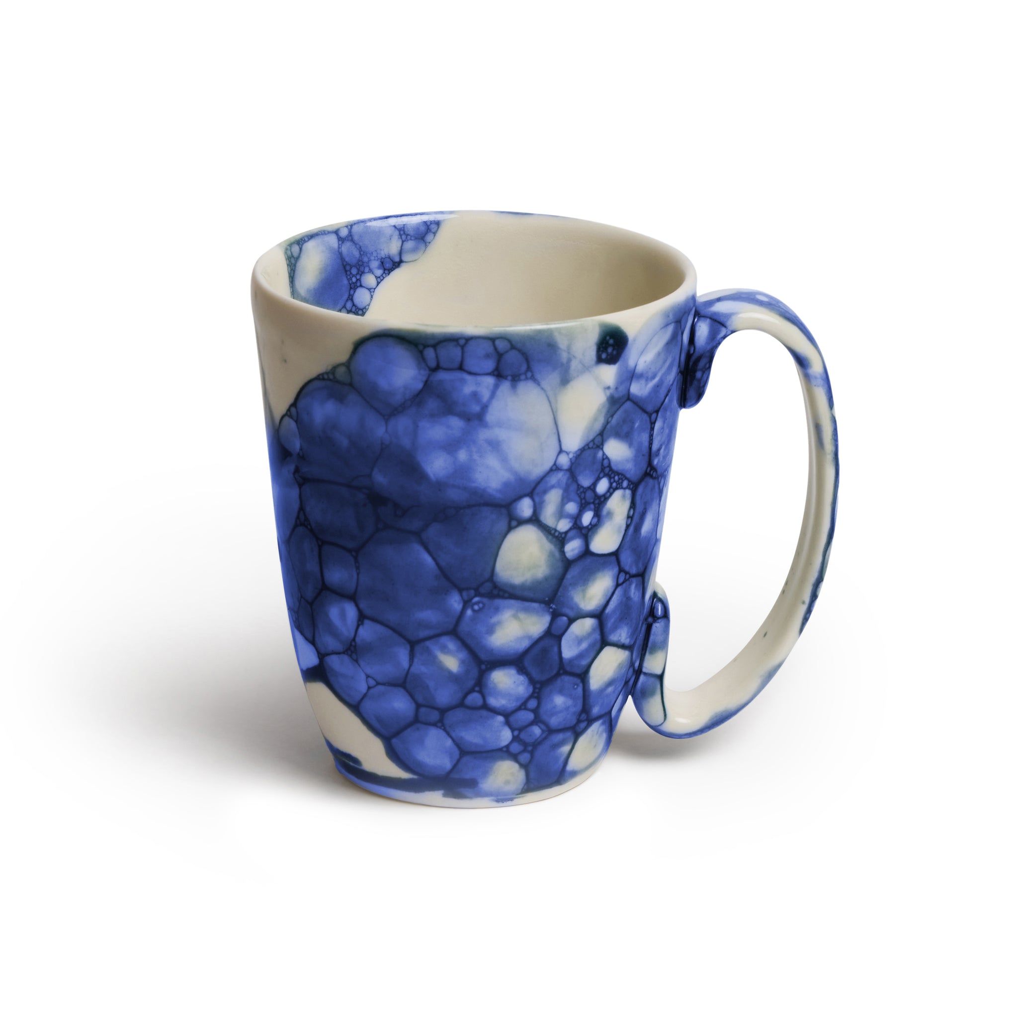 Description: Large Bubble Mug / Porcelain / Blue Glaze / Blue Bubble / Dishwasher Safe / Designed and hand made in the UK
