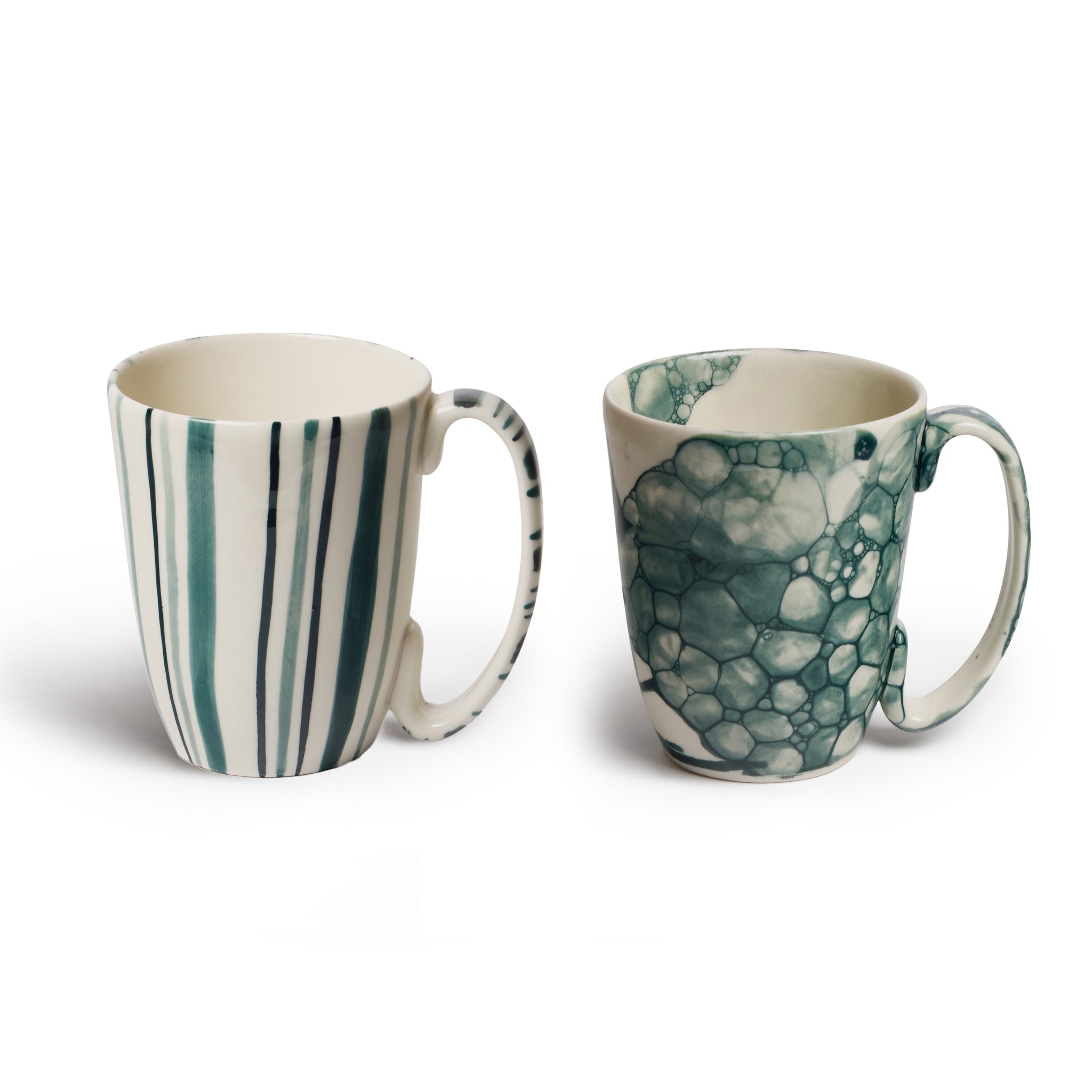 Pair of Large Teal Stripe and Teal Bubble Mugs