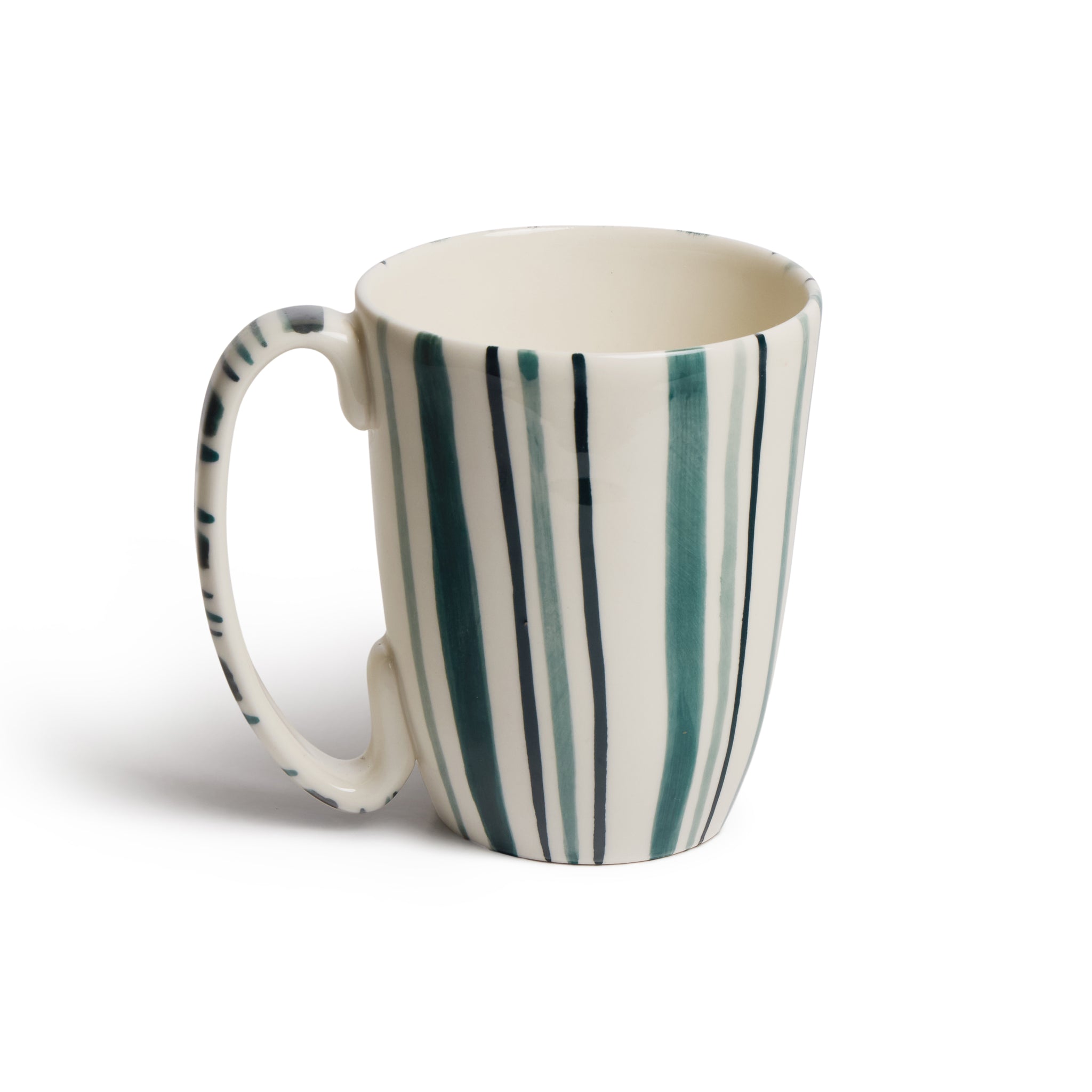 Description: Large Stripe Mug / Large Bubble Mug / Porcelain / Teal Glaze / Teal Stripe / Teal Bubble / Dishwasher Safe / Designed and hand made in the UK