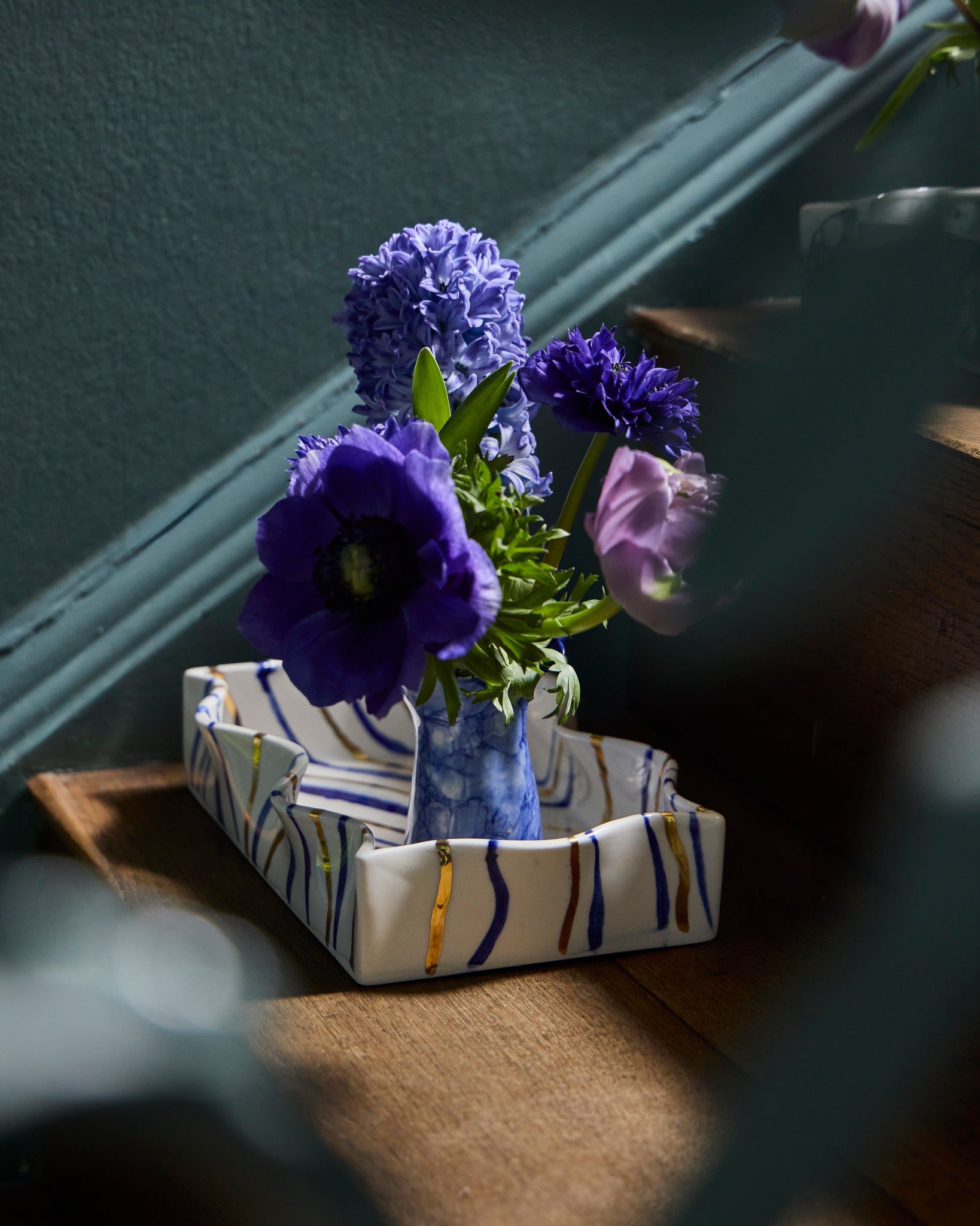 The newest addition to the dbStudio collection, our hand decorated porcelain trays are the perfect marriage of design and functionality, very much the ethos behind all dbCeramic pieces. The fluted rim and cleverly proportioned tray enhances so many areas of your home, from showcasing hand wash and hand cream in the bathroom to a stylish way to store condiments in the kitchen, the tray will also protect your surfaces from messy spills. The blue and gold stripe works well with every décor. The ultimate piece for elegant multi-tasking, elevating even a mug of tea and biscuits when the mood takes you.