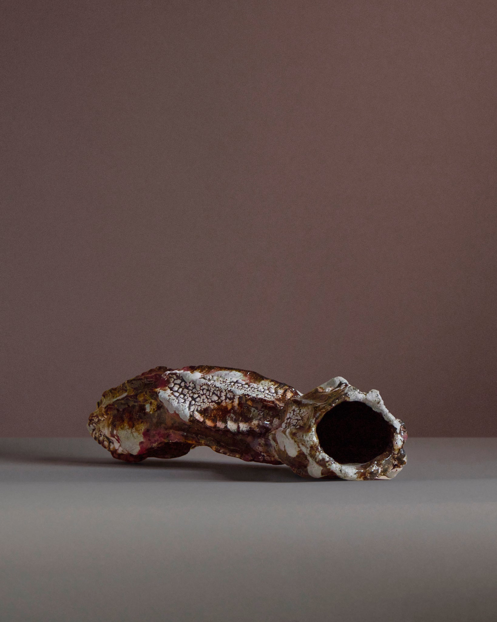 A striking landscape sculpture made from black clay and finished with multi layered glazes mixing volcanic glazes with stunning mulberry and plum hues. An arresting ornamental sculpture, whether for a coffee table or book shelf.