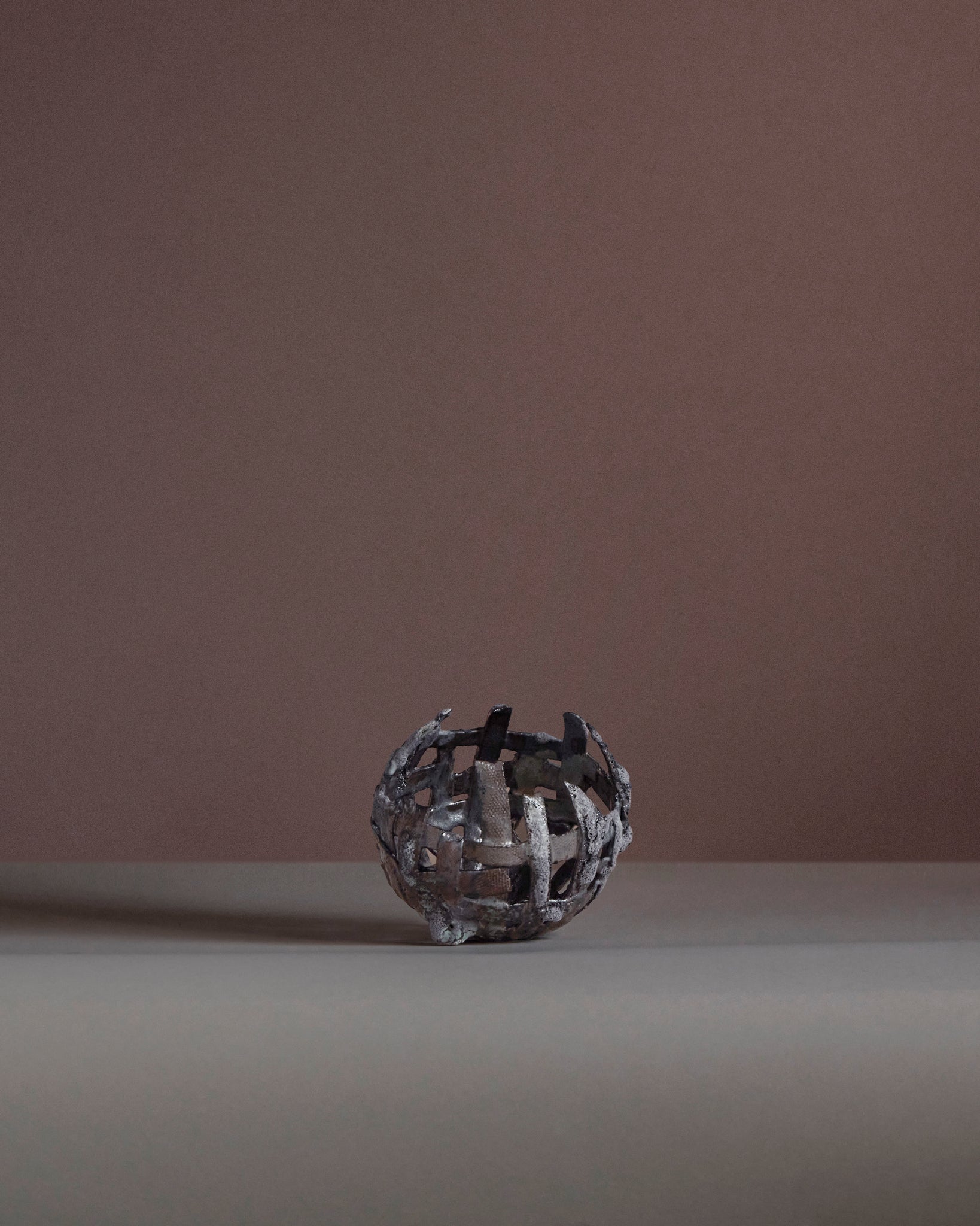 Orb / Sculpture / Black clay / Lattice / Designed and hand made in the UK